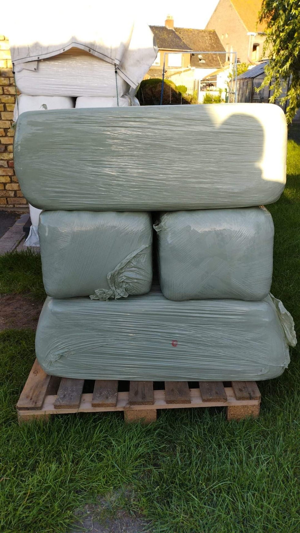 Wij verkopen kleine baaltjes voordroog (ongeveer 45kg) , het gras wordt zorgvuldig geselecteerd en enkel uitstekende kwaliteit wordt verkocht. Dit is vooral geschikt voor paarden ,schapen ,alpaca's , etc... .